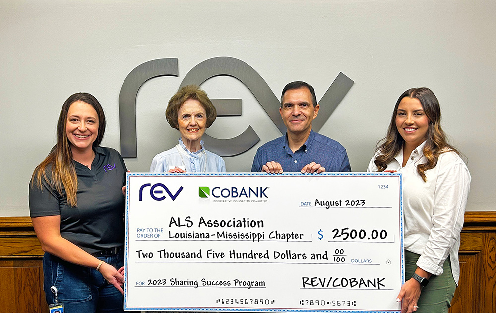 “For many years, REV, formerly EATEL, and CoBank have supported the fight against ALS by sponsoring The ALS Association Louisiana-Mississippi Chapter’s annual Walk to Defeat ALS®. In addition, Peter Louviere [REV’s CFO] is an avid supporter, raising thousands of dollars through his team, ‘Lou’s Mission,’” said Frankie Erwin, office administrator, ALS. “We are grateful that REV and CoBank have once again partnered to provide a $2,500 Bronze Sponsorship for the 2023 Louisiana Walk to Defeat ALS® as we strive to make ALS a livable disease.”